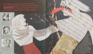 Illustrator Jesse Hodgson has done a fine job illuminating many of the poems; her inky drawings are on occasion funny, beautiful, arresting or even downright scary,