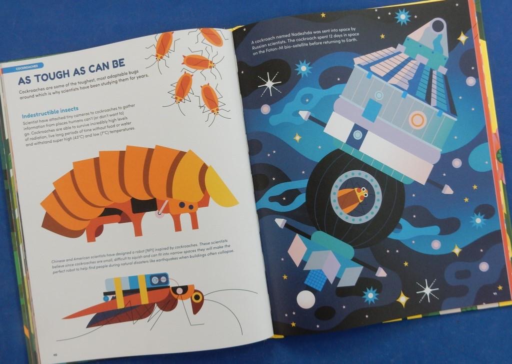 The author provides lots of fascinating snippets of information including that Chinese and American scientists have designed a robot inspired by cockroaches and that Russian scientists sent a cockroach into space for twelve days on a bio-satellite.