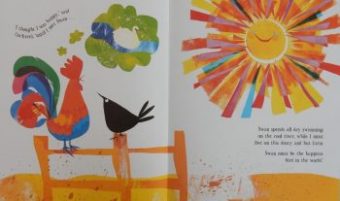 This book brings together three of William Bee’s much-loved titles – Trucks, Trains and Boats and Planes, and Tractors and Farm Machines, in one bumper volume. I’ve already reviewed each of them on this blog so I won’t repeat myself; rather I’ll suggest that if you have a young child with an interest in things mechanical (or perhaps even yummy sounding breakfast cereals such as those sold down on William’s farm), then unless they already own the individual books, a copy of this totally immersive publication narrated in William Bee’s chatty style with his detailed, gently humorous illustrations, would make a smashing present.