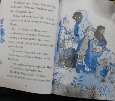 A knock at the door brings not the anticipated Nana but fellow Wild Thing, Raven announcing the imminent destruction of their River Camp on account of flooding after several days of incessant rain. “You have to come,” Raven urges. “We’re going to lose everything.”