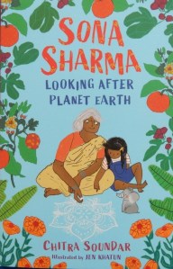 It’s great to have young Sona Sharma and her extended family back in another story. Now Sona is alarmed when she hears how much humans are doing to damage Planet Earth as her class talk about global warming, plastic pollution, deforestation and more and after the lessons she and her classmates all sign a pledge to do their bit to look after Planet Earth. Sona resolves to enlist the help of all her family members too, although once home she finds Paati (grandmother) is very preoccupied with perfecting her kolam designs in preparation for an upcoming competition.