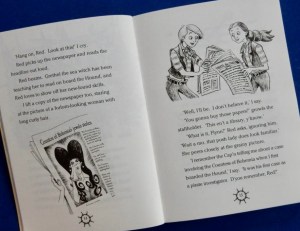 Having obtained a copy of the newspaper, the Captain together with Flint and Amy head off to visit the Countess, who the youngsters learn, gave the Cap’n his first case as a pirate investigator. The Countess says that she knows who the thief was, once again none other than Scarletbeard, scariest pirate that ever sailed the seas and the original stealer of her jewels, who Cap’n Watkins knows full well is dead beneath the waves. A ghost then? …
