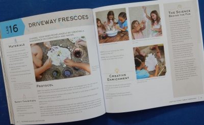 The dozen units (each with 3-5 ‘labs’) are wide ranging and include exciting-sounding activities such as making ‘driveway frescoes’ on cornstarch (cornflour in the UK) and water using food colourings and tiny paint brushes or toothpicks to create the designs; that’s in the Picnic Table Chemistry unit. There’s a list of materials needed, ideas for extending the activity and an explanation of the science involved, as there is for each of the other ‘labs’.