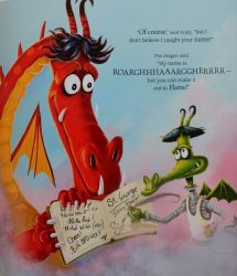 Gentle humour pervades the dragon-dominated, mixed media illustrations although even the very tiny participants make their presence felt strongly in the unfolding drama. As always in Lambert’s books, body language is superbly done throughout.