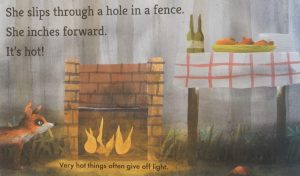 Beautifully illustrated, this is a good starting point for a topic on light and dark with early years children. I’d suggest reading the story first and then returning to discuss the additional, smaller print, possibly using it as pointers to get youngsters thinking for themselves about why for instance, Fox bumps her nose on the shop window.