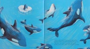 On his trip afloat on his little ice floe he sees blue whales, orcas,