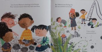 His idea seems to take ages and ages, almost forever; so much so that Joe forgets his seed and returns to imagining colour into his grey existence. But then one daydreaming day Joe spies something outside, colourful and REAL!