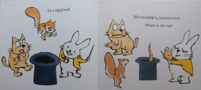 In the first instance it’s a cat; but there’s more to come. Hattie repeats the words and out leaps a squirrel.