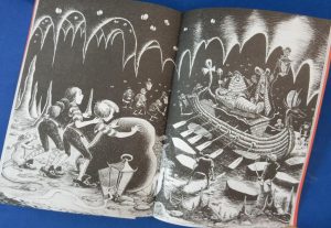 They’ve just said “Hi!” when the power level of the book drops indicating the imminent closure of the portal before which farewells are exchanged and Blrg and Zrk deliver a final message to all planeturthlings. However by now the auto translate has turned red so they and we readers will never know what “SKF FLRBL GRNK!” means.