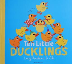 ‘The sun is up, / it’s a brand new day. Ten little ducklings / want to play.’ And play they surely do in this delightful, interactive, rhyming game of hide-and-seek. First they splash around in the pool, swimming, diving, floating and fishing. Thereafter they zoom around on their scooters, take to the sky in hot air balloons, frolic in the farmyard, explore the jungle, have a snowball fight, attend a chaotic birthday tea, spend time on the beach and eventually tire themselves out ready for bed.
