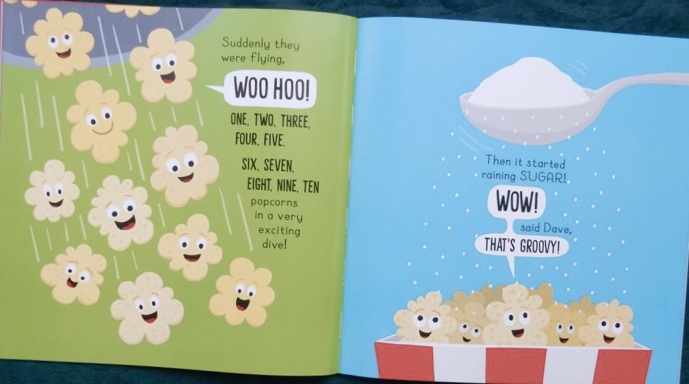 If you’re looking for a wacky way to encourage small children to practise counting to ten then get your hands on this rhyming story that begins to explode one rainy afternoon when the contents of a packet of popcorn is sent tumbling into a pan atop the stove. On goes the lid and happy to be out of the bag, the corn pieces are in party mood despite the rising temperature. Suddenly there comes a POP! It’s Dave delighted at his muscly new shape.