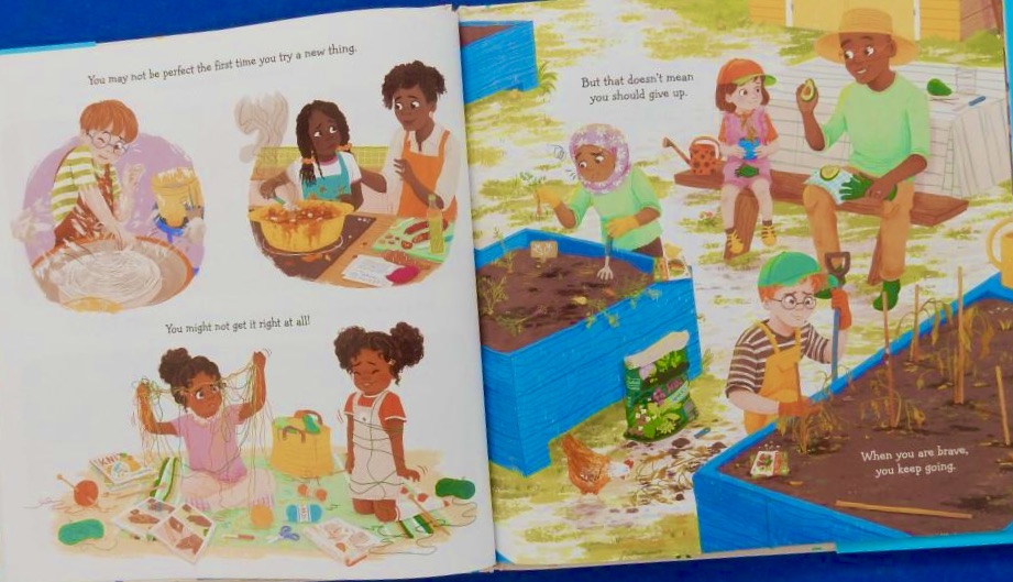 ‘Every day, says author Margaret O’Hair, we meet people who inspire us – people who are amazing at the things they do.’ Sofia Cardoso illustrates a guitarist, a vet, a pilot, a baker, a gardener and several others. Before they became amazing though, they had to make the ‘tough decision’ to try something new, which likely meant they had to be brave. This is something that needs to be learned like everything else and no matter what ‘being brave means doing something you want to try.’ Of course, success seldom comes at the first try, but that’s no reason to give up;