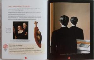 Then follow ten pages wherein D’Harcourt discusses each of her chosen examples individually; and the two final spreads have lift-the-flap mini paintings of each work that reveal the whereabouts of the details in the bubbles, and also provide short notes on the artists.
