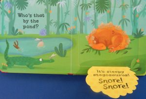 A plan is needed, a plan to discovers its whereabouts, so the friends pack their rucksacks (Pig’s with camping gear, Florentine’s with tasty treats) and march out into the forest. After trudging, tramping, hopping, hurdling, splishing and splashing, they suddenly hear alarming sounds – oh no. Don’t panic it’s only Pig’s rumbly tum.