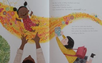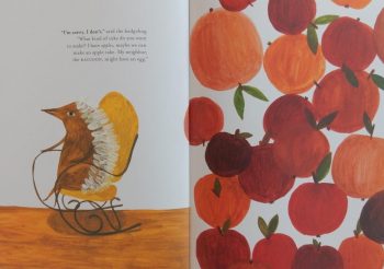 Davide Cali’s tale of collaborative endeavour is illustrated in rather charming folk-art style watercolour illustrations that embody the feeling of camaraderie that exists among the forest animals and in the end the ingredients of warmth, friendship and teamwork that contribute towards its making are as important as the edible ones that go into the cake.