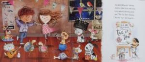 All ends happily in this totally crazy tale, which is certain to make your own eyebrows do more than a little twitching. Tazzyman’s illustrations of the assorted quirky characters both human and otherwise perfectly complement the text .