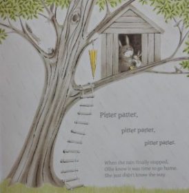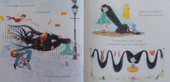 That’s the question at the heart of this story featuring best pals, Alex, a lively adventurous dog and Lulu, a thoughtful, artistically minded cat. Of course they do have some common interests such as going to the park but it’s when they get there that their differences manifest themselves. Alex climbs trees and swings from high branches,; Lulu stays still observing ants, intending to paint them at home later. On the way home in the rain, Alex cannot resist splashing in all the puddles; Lulu hurries ahead keeping her feet dry. “..we are just SO different,” she remarks.