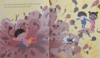 Dogs and exceedingly dirty water or mud seem to have a magnetic attraction and it’s certainly the case in musician/songwriter David Gibb’s madcap rhyming tale that begins with an extremely mucky pooch and instructions from Mum to ‘give the dog a bath’.