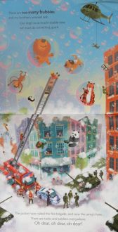 Well- intentioned Bear is huge, clumsy and oblivious to the effect his actions have on his bestie as he unknowingly breaks Squirrel’s teacup, sneezes the roof right off his house and nigh on flattens him as they share a taxi ride.