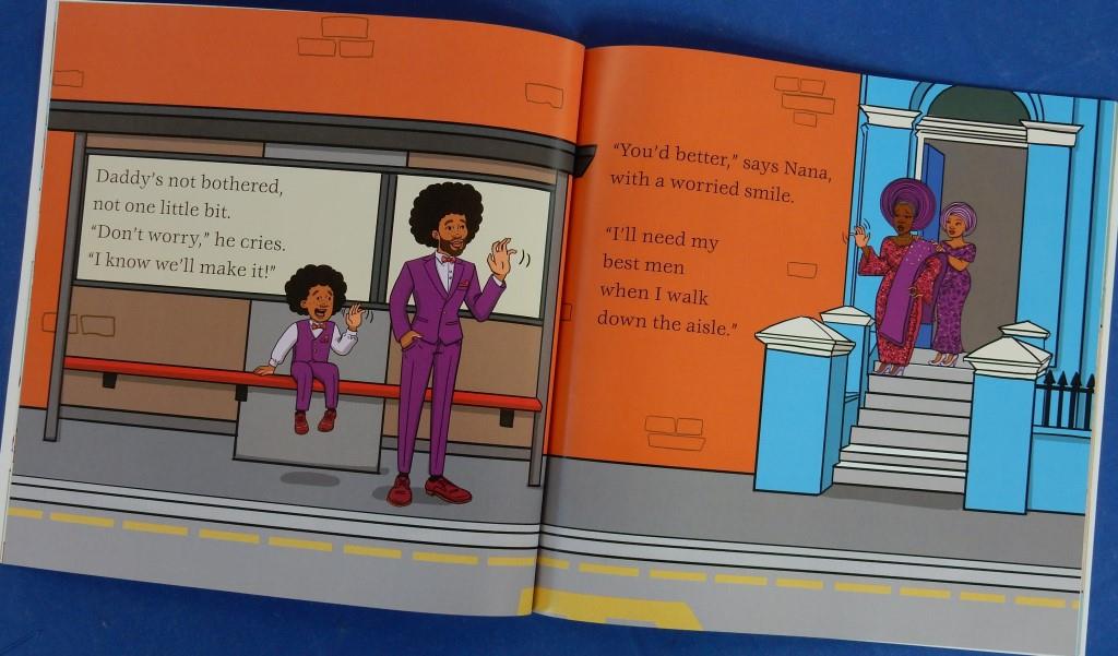 The tale begins on the morning of Nana’s wedding and she declares that both father (who is giving the bride away) and son (who will act as page boy) are in need of haircuts and right away.