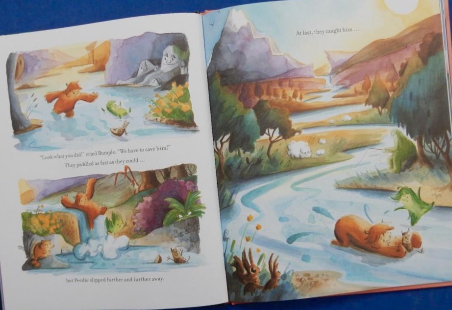 while Atomic Bear dangles by the seat of his pants from a tree branch. He is however, suspended right above an exceedingly muddy, mega- slimy patch and there just happens to be rather a lot of small insects creating something of a buzz right alongside. Can Mr P. finally overcome those pet aversions of his and save the day, whether or not Atomic Bear is faking the whole thing?