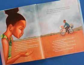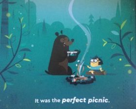 The author tells how having burst forth from Earth, the first engine is allowed to fall away leaving, encased in gold foil, the spacecraft ‘no bigger than a small piano’ whizzing through space at over 10 miles per second. (Illustrator Simona Ceccarelli bestows a big grin on the face of New Horizons as this happens and thereafter she becomes a quirky character with personality.)