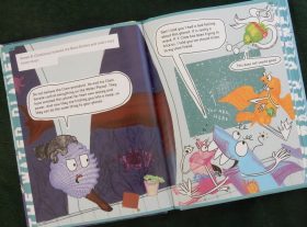 Packing the adventure with punny humour, hilarious interchanges and with a bounteous brio, Jon Scieszka, via his Earth narrator, cleverly knits together environmental information and facts about climate change. Combined with Steven Weinberg’s equally zany collage illustrations, every one of which is as immersive as the watery environment of the story’s setting, (love the spread on how they were created) this is a terrific second instalment.