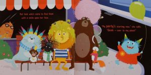 and without food the creatures won’t be able to fly, which means Santa can’t complete his delivery round. I love Nikki’s exuberant scenes of Oscar’s chaos creating frolics and especially the sight of the far from happy reindeer on the final spread.