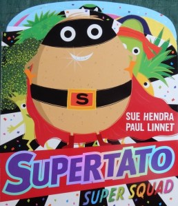 Sue and Paul have created a splendid, large format cutaway board book treat for little humans that introduces some of the key Supertato characters and in so doing offer an important lesson about helping one another, kindness and collaboration.