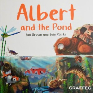 There’s a new pond in the garden where Albert tortoise lives, quite a deep one, so he knows not to venture in. Suddenly as he stares into the water, he notices a pair of eyes staring straight at him, but they blink and disappear. Albert tells all his friends, who take a look too, but the creature merely blinks and swims away.