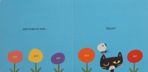 That though is getting ahead of the tale that begins with a warning to Little Mouse to hide inside the blue house. Through the door goes Little Mouse but the door is open wide so another furry creature enters too.