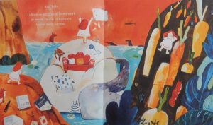 Now one of the most striking things about India, particularly the southern part is the dazzling, dancing array of butterflies and it’s something my partner and I both appreciate every time we go. I happen to have picked up a few words of Malayalam and thought I recognised Ammuchi as mother but then realised that word is ‘ummachi’ ; I know grandmother, or rather maternal grandmother as ‘ammacci’ in Tamil (having taught some Tamil speaking 5 year olds in my reception classes) and my Hindi, which is much better, tells me that ‘puchi’ means kiss. So, before even opening this gorgeous book, I was making lots of connections and deciding the title means ‘grandmother’s kiss’.