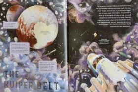 He then ingeniously goes on to explain how the constantly developing nature of space science means that many youngsters’ knowledge of our solar system is likely to be more accurate than that of lots of grown-ups. Having read this book such youngsters will be able to tell any doubting adults that Pluto is a Kuiper Belt Object (KBO) and one of five dwarf planets. They’ll be able to introduce them to Sedna too, as Regas does to readers herein.