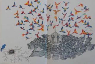 With the invitations duly written to all her friends, Old Bear suddenly hears voices. it’s those spiders again, pointing out that they’ve not been invited.