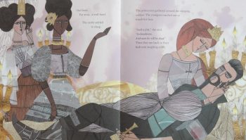 That night, tired from all her labours, Old Bear falls fast asleep right away. Not so those spiders however. They go outside to take a good look at the tree. They scuttle all over it, ‘weaving and winding wondrous webs.’ I love that alliteration and there’s lots more.