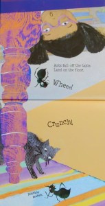 Next morning the spiders might have hidden themselves away but the fruits of their labours are evident and when Old Bear looks outside, she is not happy at what she sees on the tree. However there’s no time to do anything before her guests come a-knocking at her door. What do you think their reaction will be?