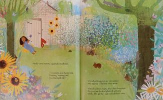 One day when Maya feels particularly sad he tells her a story about Mum, relating how her remedy for down days was to go outside, plant seeds and wait for them to grow, by which time her worries would be replaced by something of beauty.