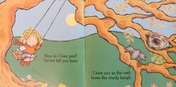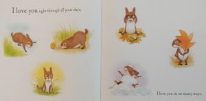 The final spread fuses present and future with ‘And as our friendly Earth/ loves to spin around. / I love you as the moon / loves each shining star. // I love all that you will be / and everything you are.’ So be it.