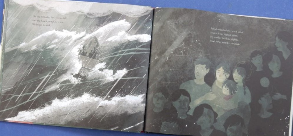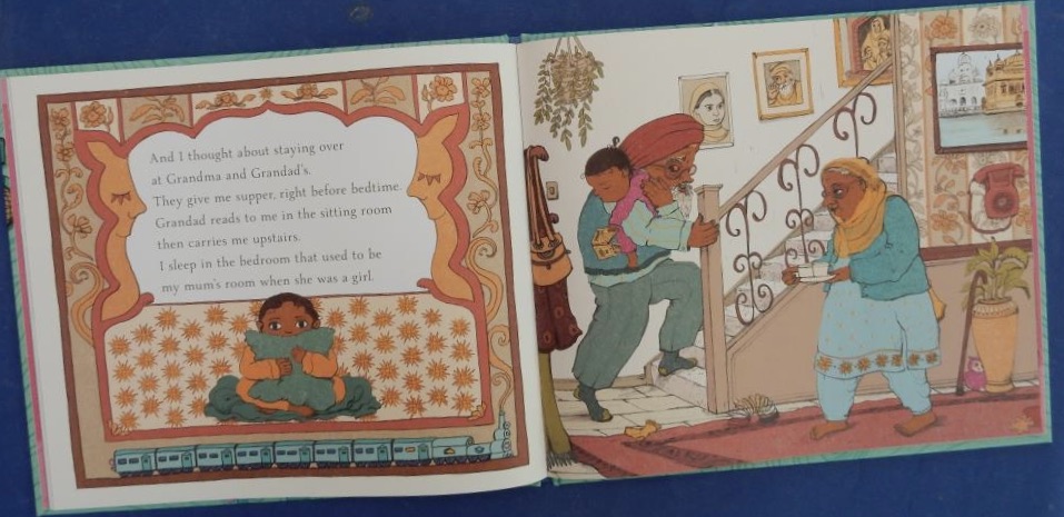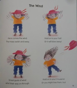 This is Michael Rosen’s hugely popular poem ‘Hot Food’ to which a prelude has been added wherein the narrator tells readers, “When I was a boy I thought my dad knew everything.’ However the day dawns when a discovery destroys that belief. This is what happens: It’s dinner time and the family – mum, dad, the narrator and his brother are sitting around the kitchen table, plates piled high with dinner. It’s evident to the narrator that the potato’s a tad on the hot side and so with just a small amount on his fork, he blows on it – whooph whooph – ‘until it’s cool, / just cool, / then into the mouth: nice!’ His brother and mum do a similar thing. Dad however acts, let’s say, rather rashly. Into his mouth goes a large amount of potato: